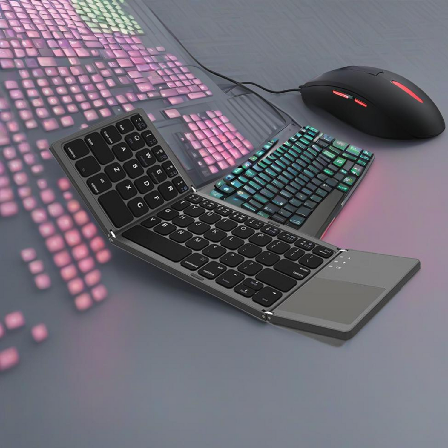 with its foldable design, this keyboard is ultra portable, fitting easily in your bag or pocket
